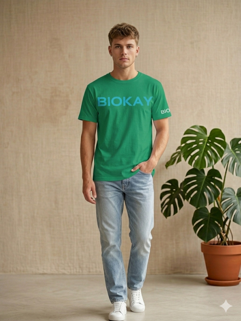 Frissítsd fel a ruhatáradat ezzel a stílusos és kényelmes BIOKAY pólóval! A vibráló élénkzöld szín és a letisztult, világoskék színű logó modern, sportos megjelenést kölcsönöz, ami tökéletes választás a mindennapokra.