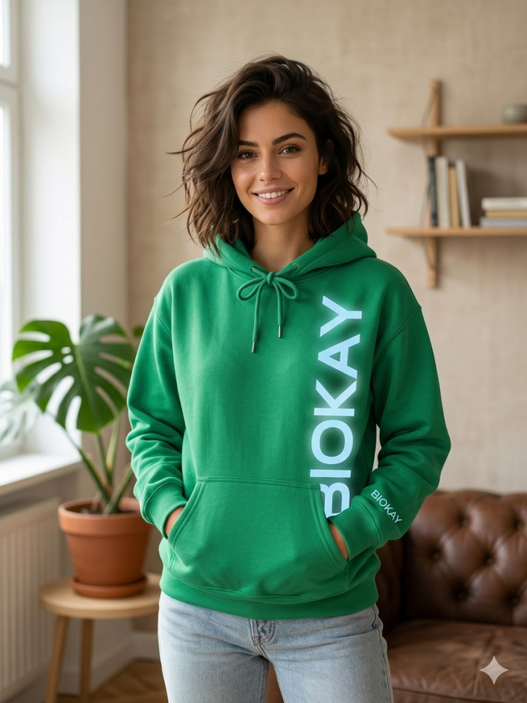 BIOKAY Prémium Kapucnis Pulóver – Élénkzöld & Kényelem