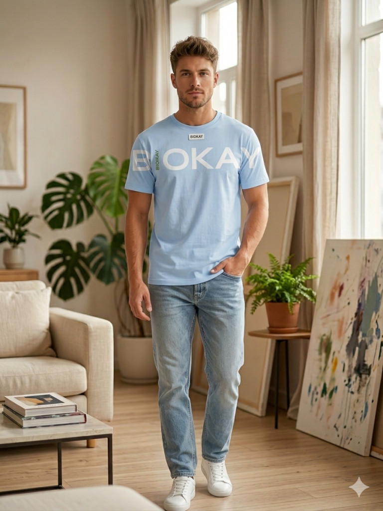 BIOKAY Prémium Rövidújú Póló – Égszínkék Frissesség & Fenntartható Stílus